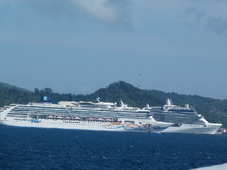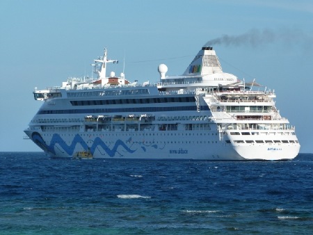 Da ist die Begrenzung wieder. Kleiner Unfall der AIDA Aura auf Roatan